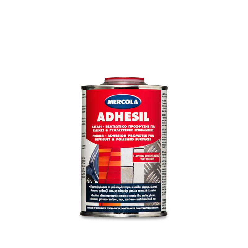 Το ADHESIL είναι διαφανές υλικό βελτίωσης της πρόσφυσης μικρομοριακής δράσης. Λειτουργεί ως αστάρι σε γυαλιστερές, λείες και γενικά επιφάνειες με χαμηλή επιφανειακή ενέργεια που δεν προσφέρονται για συγκόλληση.