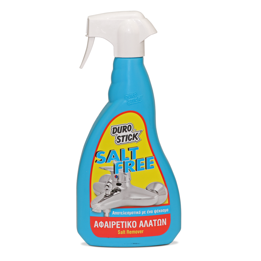 Δραστικό υγρό που αφαιρεί άλατα νερού, υπολείμματα σαπουνιού και θαλασσινού νερού, σκουριά και πουρί. Eίναι κατάλληλο για χρήση στο σπίτι, στον χώρο του μπάνιου (βρύσες, ντουζιέρες, πλακάκια και αξεσουάρ μπάνιου), καθώς και στον χώρο της κουζίνας (ανοξείδωτους νεροχύτες, βραστήρες, σκεύη), ατμοσίδερα κ.ά. Επίσης, με το SALT FREE τα ανοξείδωτα μέρη σκαφών απαλλάσσονται από άλατα και σκουριά, διατηρώντας την αστραφτερή τους λάμψη. Είναι απαραίτητο και σε ξενοδοχεία, εστιατόρια, νοσοκομεία και γενικά σε χώρους μαζικής εστίασης. Ξεπλένεται με άφθονο νερό, αφήνοντας άρωμα φρεσκάδας που διαρκεί.