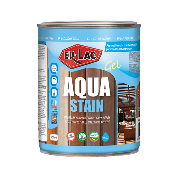 Το AQUA STAIN GEL είναι άοσμο, υδατοδιαλυτό, ακρυλικής βάσης, συντηρητικό βερνίκι, σε μορφή gel για ξύλινες επιφάνειες εσωτερικού/εξωτερικού χώρου. Λόγω της ειδικής σύστασής του δεν διαρρέει ούτε στάζει και είναι ιδανικό για εφαρμογή σε κάθετες επιφάνειες καθώς και για ξύλινες οροφές. Προστατεύει από την υπεριώδη ηλιακή ακτινοβολία, εξασφαλίζει βαθιά διείσδυση και αδιαβροχοποίηση.
