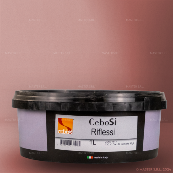 Ακρυλικό φινίρισμα με βάση το νερό για εσωτερικούς χώρους, πλενόμενο, ημι-κάλυμμα. Το CeboSi Riflessi σας δίνει τη δυνατότητα να δημιουργήσετε μοντέρνα τζάμια που χαρακτηρίζονται από μεταλλικές ανταύγειες σε αποχρώσεις του ασημί ή του χρυσού, που δίνουν φωτεινότητα και κομψότητα σε κάθε περιβάλλον.