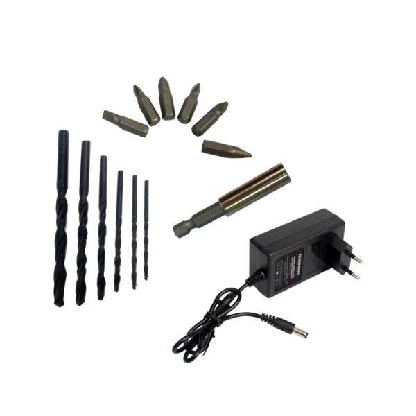 Περιέχει πολλά εξαρτήματα για διάφορες εφαρμογές διάτρησης και βιδώματος.
