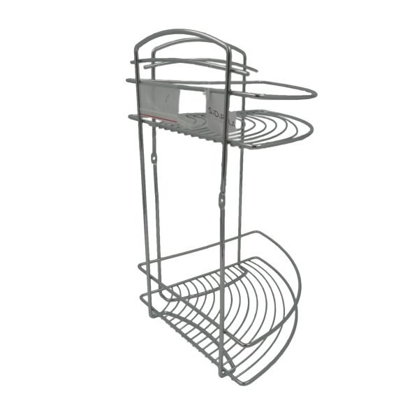 Εταζέρα μεταλλική διώροφη, με ίνοξ εμφάνιση, για την αποθήκευση αναλώσιμων μπάνιου, συμπεριλαμβάνονται και οι βίδες στήριξης.