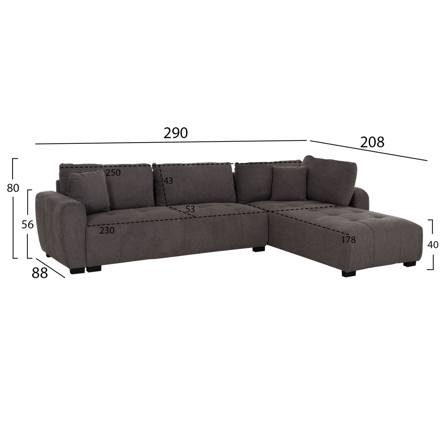 Διαστάσεις γωνίας: 290×88-208×80Υ εκ.