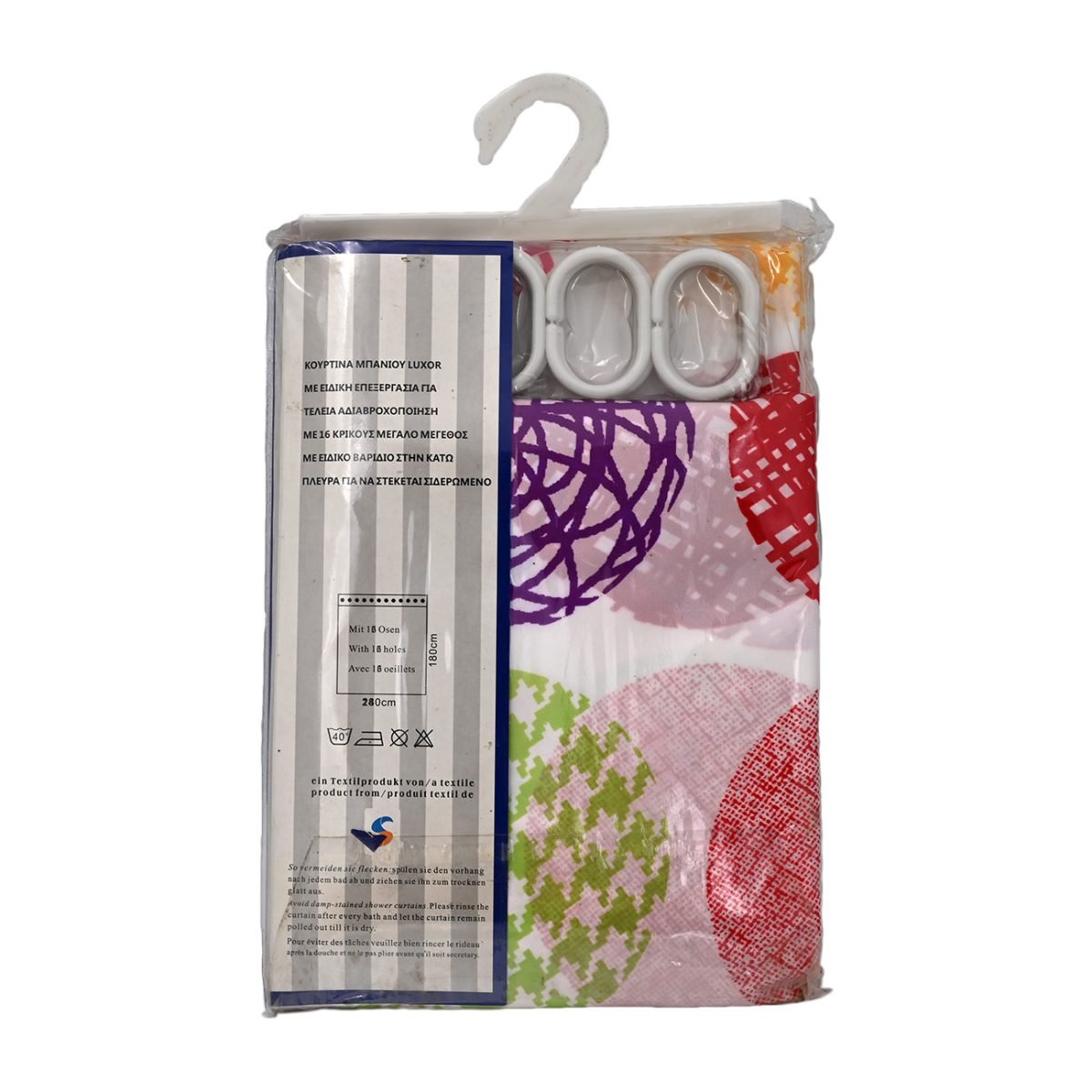 Κουρτίνα μπάνιου υφασμάτινη, πλενόμενη, με βαρίδιο για άψογη εφαρμογή, σε διάφορα σχέδια αλλά και μονόχρωμες, συμπεριλαμβάνονται οι κρίκοι.