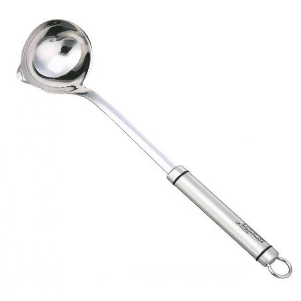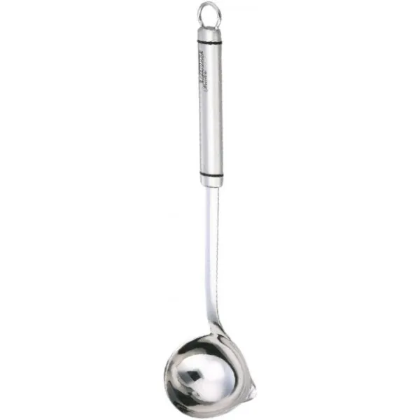 Κουτάλα σάλτσας από υψηλής ποιότητας ανοξείδωτο ατσάλι, εύχρηστη και πρακτική, έχει κάθετη λαβή που βυθίζεται εύκολα ακόμα και σε ψηλά και στενά δοχεία και είναι εξοπλισμένη με φλιτζάνι με στόμιο που διευκολύνει το ρίξιμο της σάλτσας σε μπουκάλια χωρίς να λερώνει τον πάγκο. ‘υποστήριξη. Είναι εξοπλισμένο με δακτύλιο για να το κρεμάτε στη μπάρα εργαλείων και να το έχετε πάντα στο χέρι. Ανθεκτικό και υγιεινό, πλένεται στο πλυντήριο πιάτων, είναι άοσμο και μπορεί να χρησιμοποιηθεί όσες φορές επιθυμείτε χωρίς να κινδυνεύετε να ανακατεύετε γεύσεις. Έχει μήκος 32 cm.