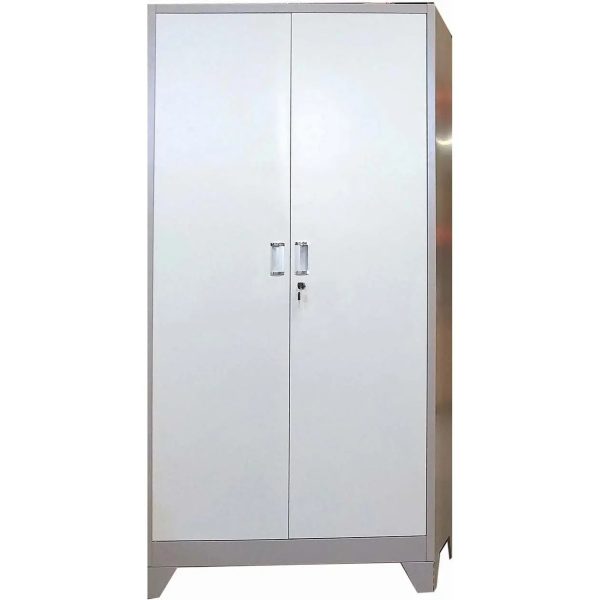 Μεταλλική ντουλάπα με 4 ρυθμιζόμενα ράφια, κλειδαριά και ποδαράκια. Διαθέτει διαστάσεις 90x40xΥ195cm και διατίθεται σε γκρι με μολυβί απόχρωση.