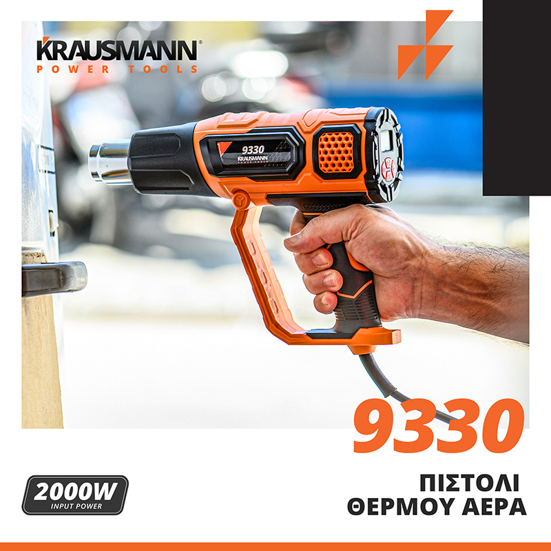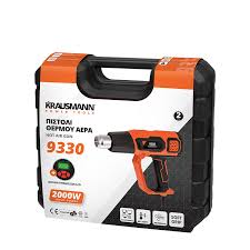 Το πιστόλι θερμού αέρα KRAUSMANN® με ηλεκτρονικό έλεγχο ροής και θερμοκρασίας αέρα με οθόνη LCD, προορίζεται για την αφαίρεση υπολειμμάτων χρωμάτων και χρωμάτων από ξύλο, μέταλλο και συνθετικά υλικά, αφαίρεση αυτοκόλλητων ετικετών, τοποθέτηση ετικετών PVC, σύντηξη συνθετικών υλικών (συμπεριλαμβανομένων υλικών και φύλλων με επικάλυψη από PVC), εφαρμογή σωλήνων με συρρίκνωση , επισκευή σανίδων σκι και σερφ, καθώς και παρόμοιου εξοπλισμού.Περιλαμβάνει: