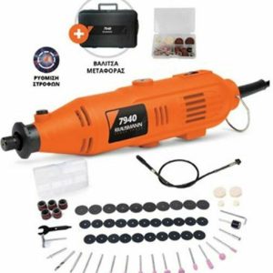 Μίνι ηλεκτρικό εργαλείο με πολλαπλές λειτουργίες χάρη στα 60 διαφορετικά εξαρτήματα που διαθέτει, κατάλληλο για κοπή, χάραξη, λείανση, στίλβωση, τρύπημα, χάραξη και πολλές άλλες εφαρμογές, σε πρακτική πλαστική βαλίτσα για καλύτερη αποθήκευση και μεταφορά. Περιλαμβάνει: