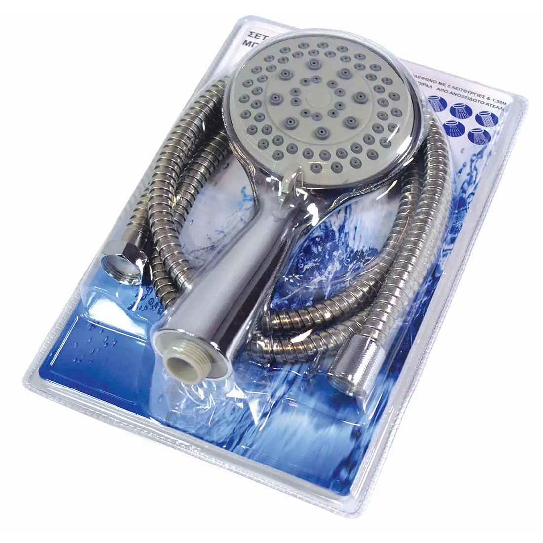 Σετ τηλέφωνο μπάνιου inox με σπιράλ 1,50μ και 5 διαφορετικές επιλογές ρίψης.